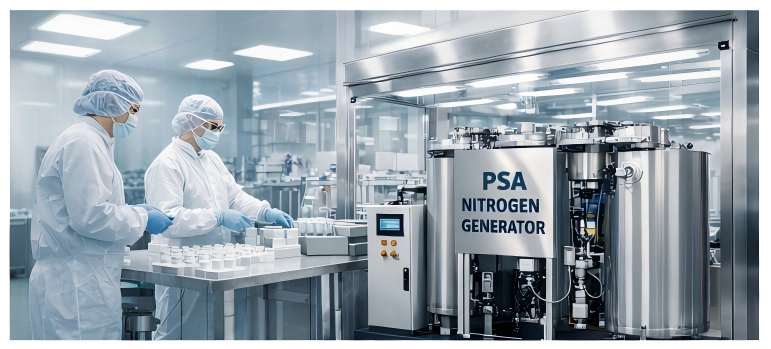 Генератор азота для фармацевтического производства — это промышленная система, которая производит азот на месте путем его отделения от сжатого воздуха. Вместо зависимости от внешних поставок газа фармацевтические предприятия могут непрерывно генерировать азот по мере необходимости.