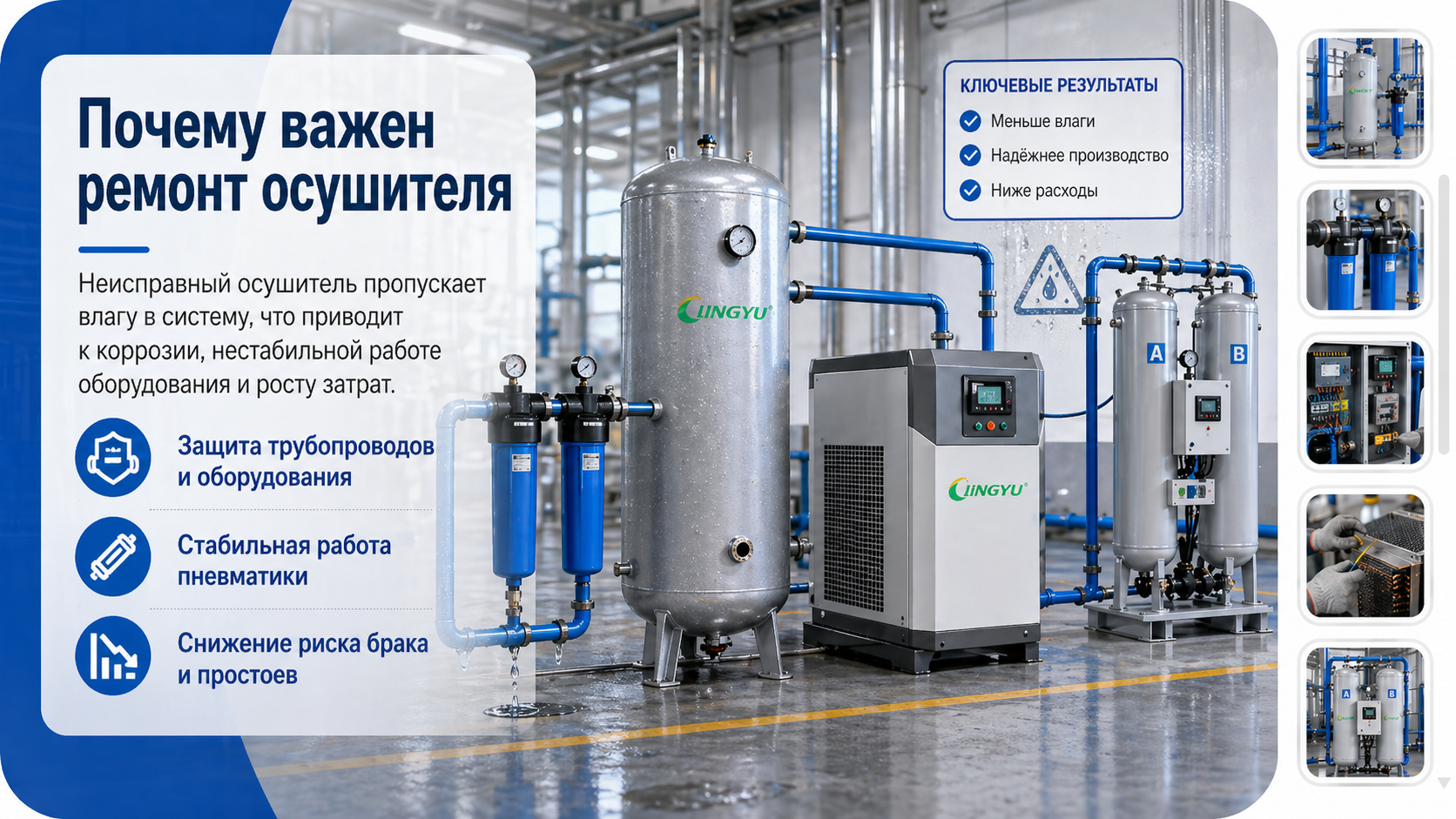 Как ремонт осушителя защищает всю систему сжатого воздуха